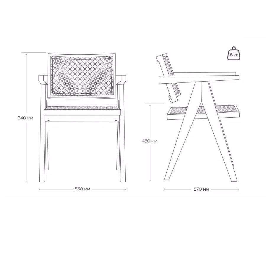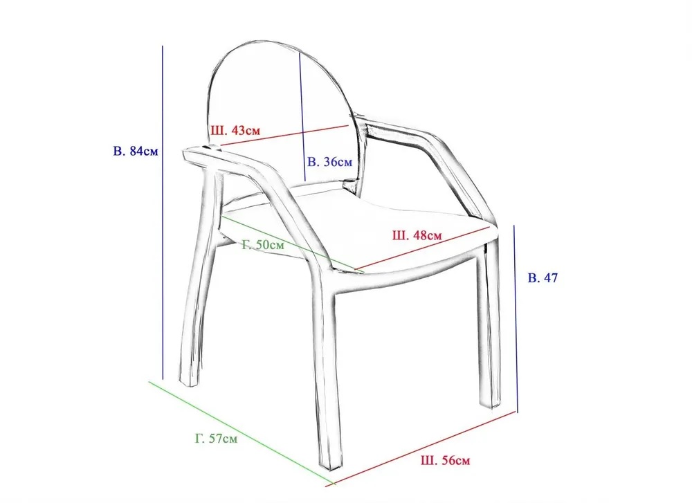 Ширина стула с подлокотниками