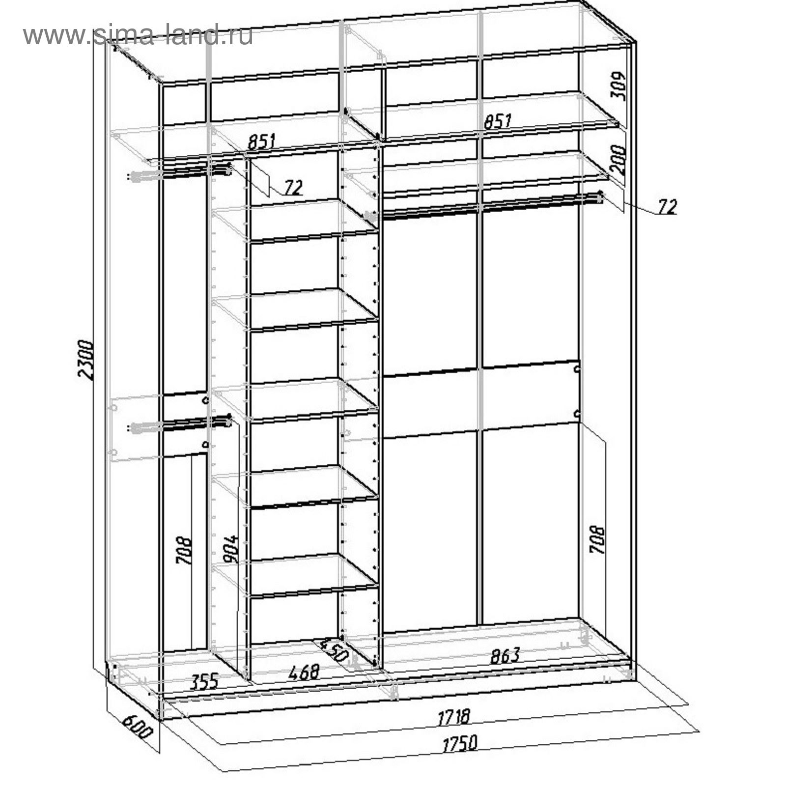 Ширина встроенного шкафа купе