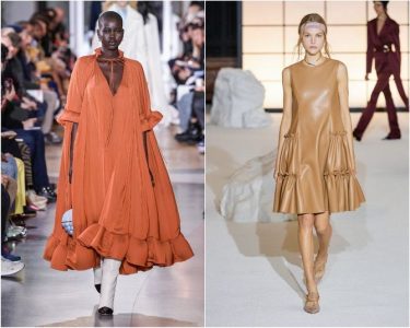 Еще одна тенденция 2021-2022 года – изделия из кожи. И кожаные платья широкого кроя идеально вписываются в этот модный тренд. Доказано дизайнерами Ferragamo и Valentino.