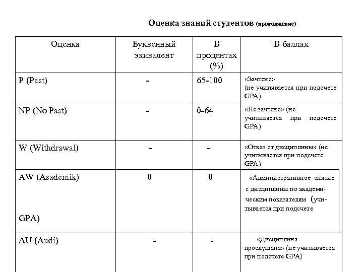 Шкала оценки знаний