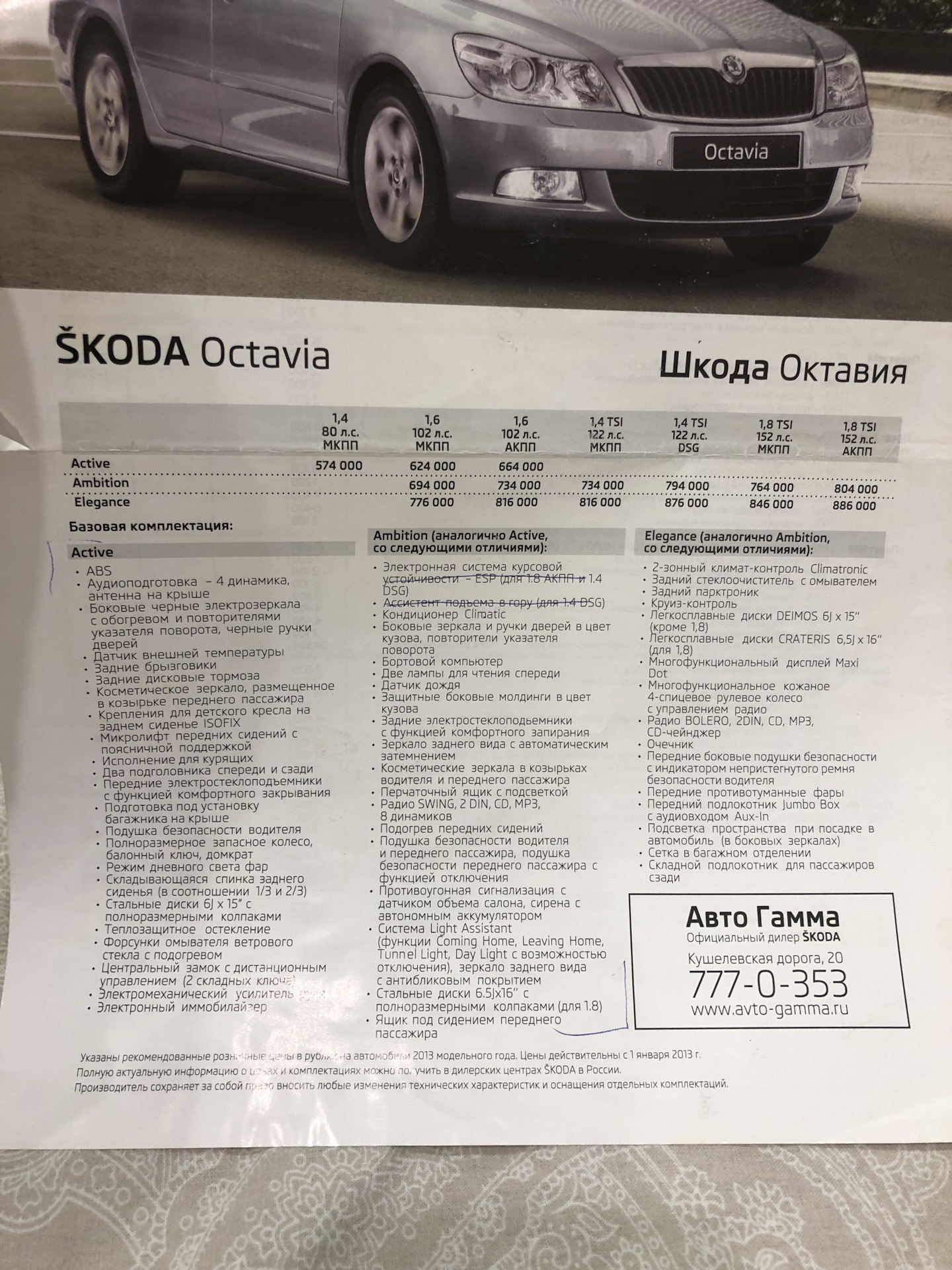 Шкода комплектация ambition