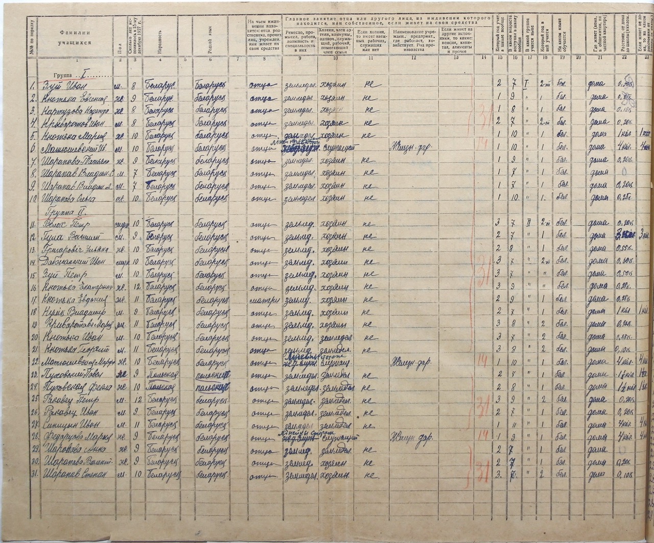 Школьная перепись по Соколовичам