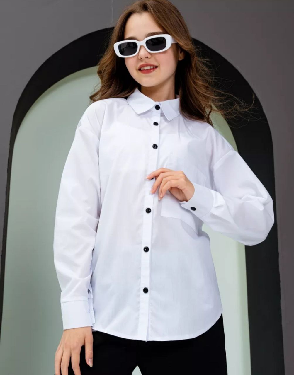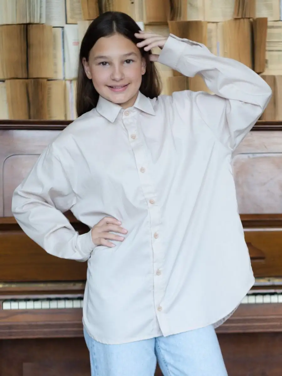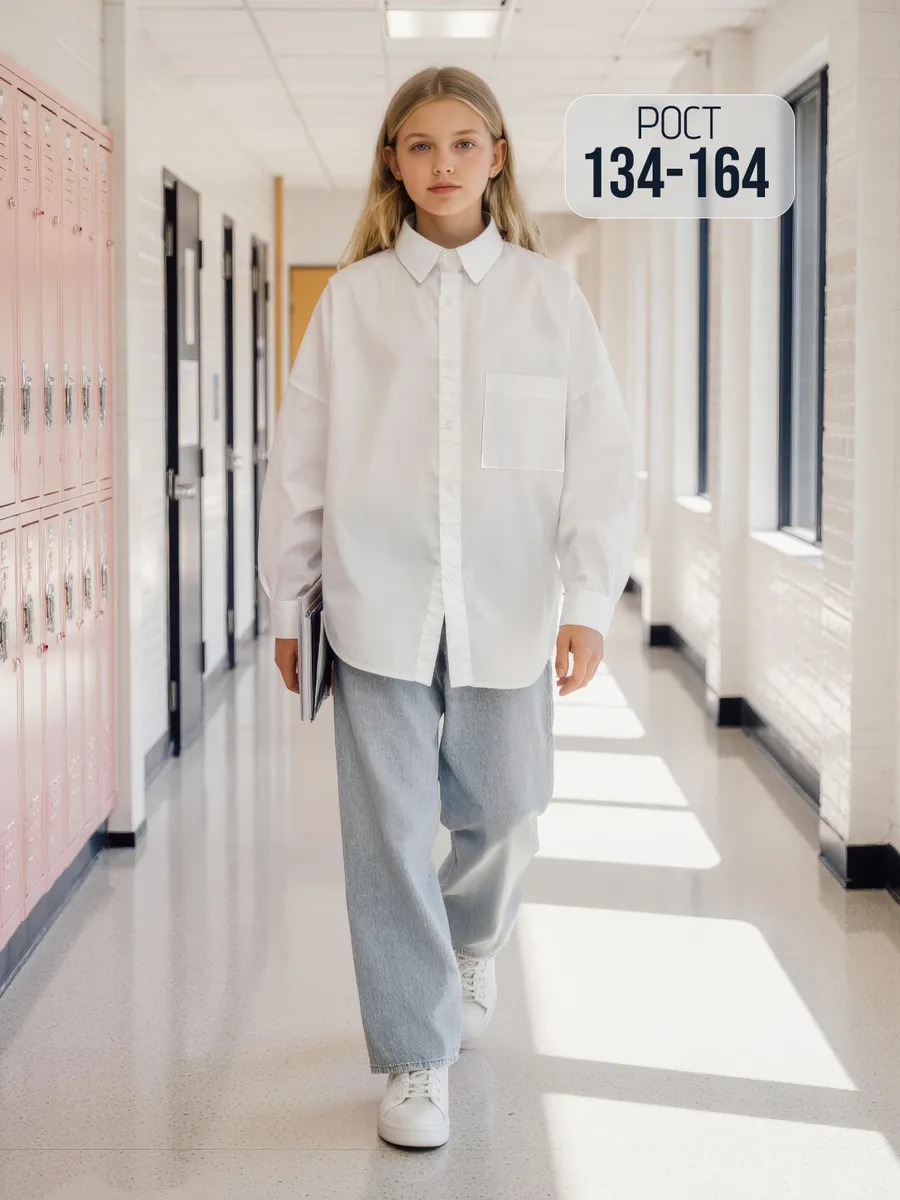 Школьная рубашка оверсайз для девочек 85 фото
