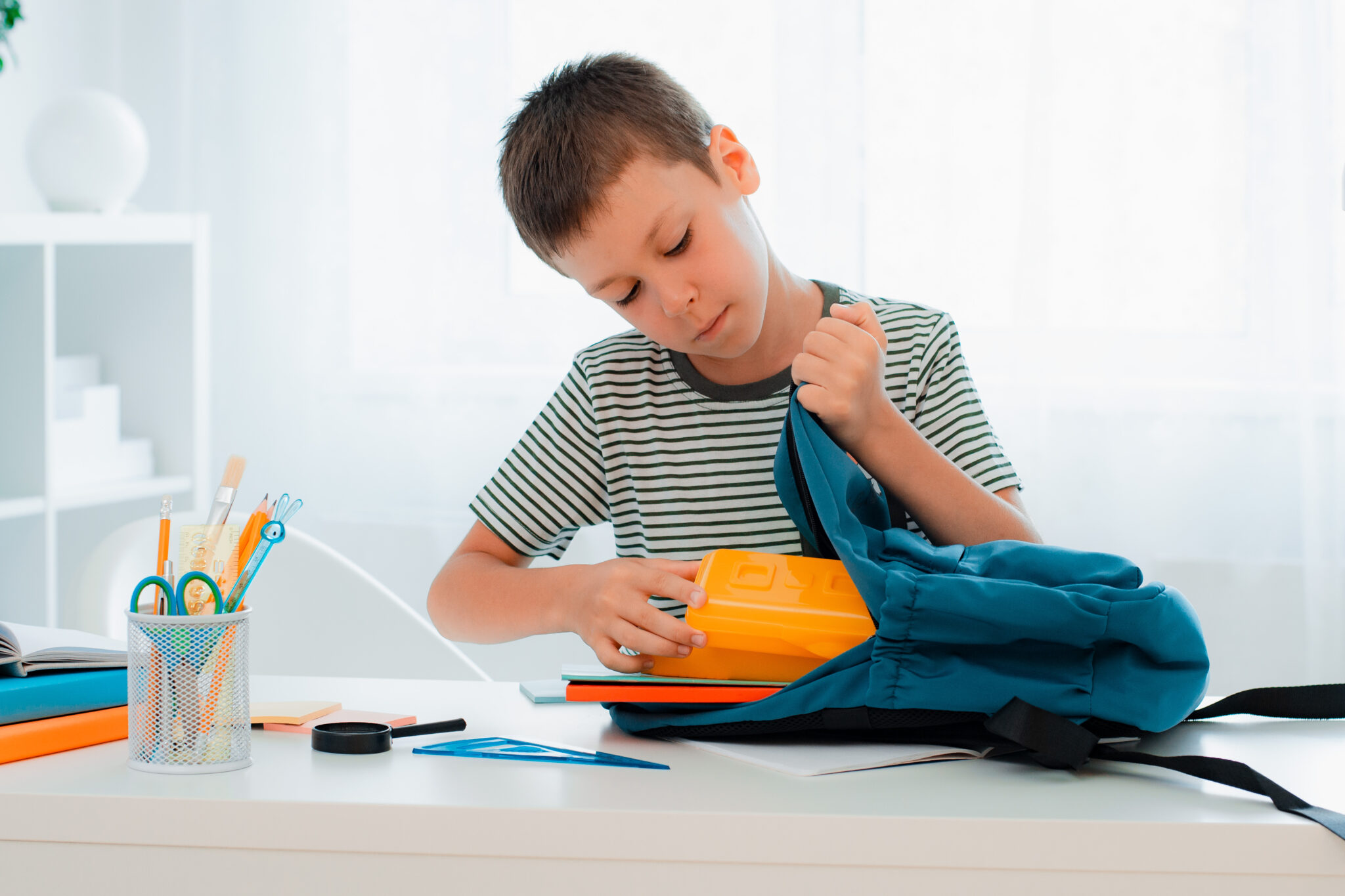 Школьник собирается в школу