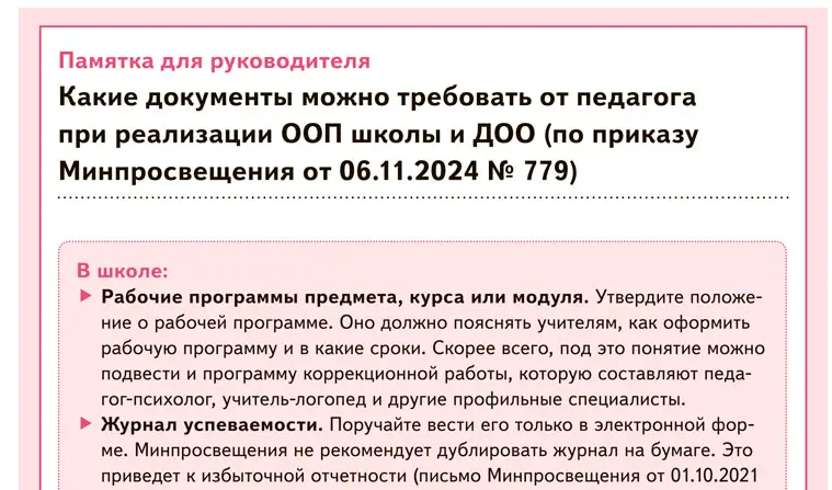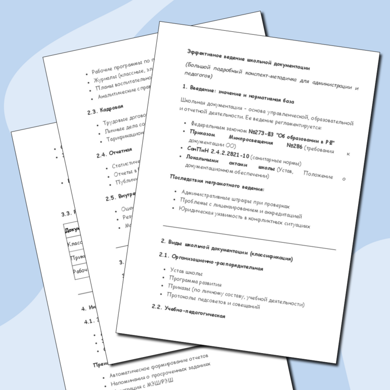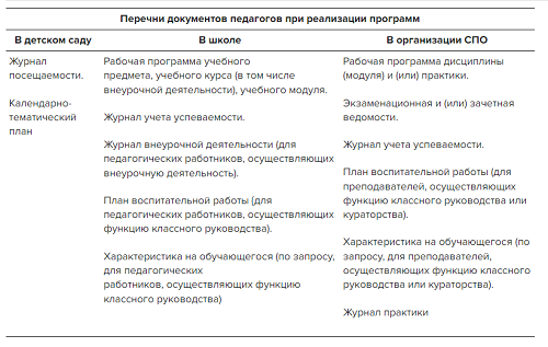 Школьные документы учителя