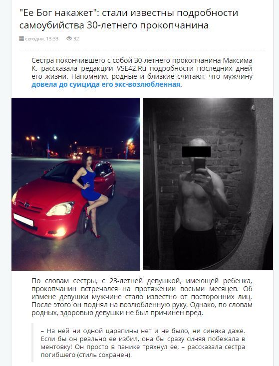 00:20, 13 Фев Житель Кемерова лишился глаза из-за спора за парковочное место Житель города Прокопьевска Кемеровской области стал подозреваемым в уголовном деле о причинении тяжкого вреда здоровью из-за того, что лишил . . .