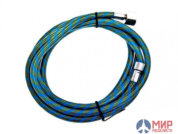 Шланг предназначен для соединения аэрографа и компрессора, дополнительно защещен матерчатой оплеткой.
