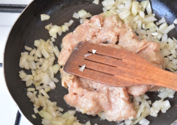 5. Затем выложим мясной фарш.