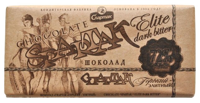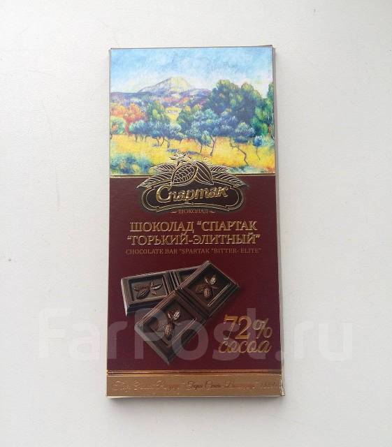 Шоколад Спартак Горький - элитный 90% . "СПАРТАК" - чемпион! Чёрный, как ночь, шоколад с очень высоким содержанием какао, аж с 90%! Это слишком даже для такого . . .