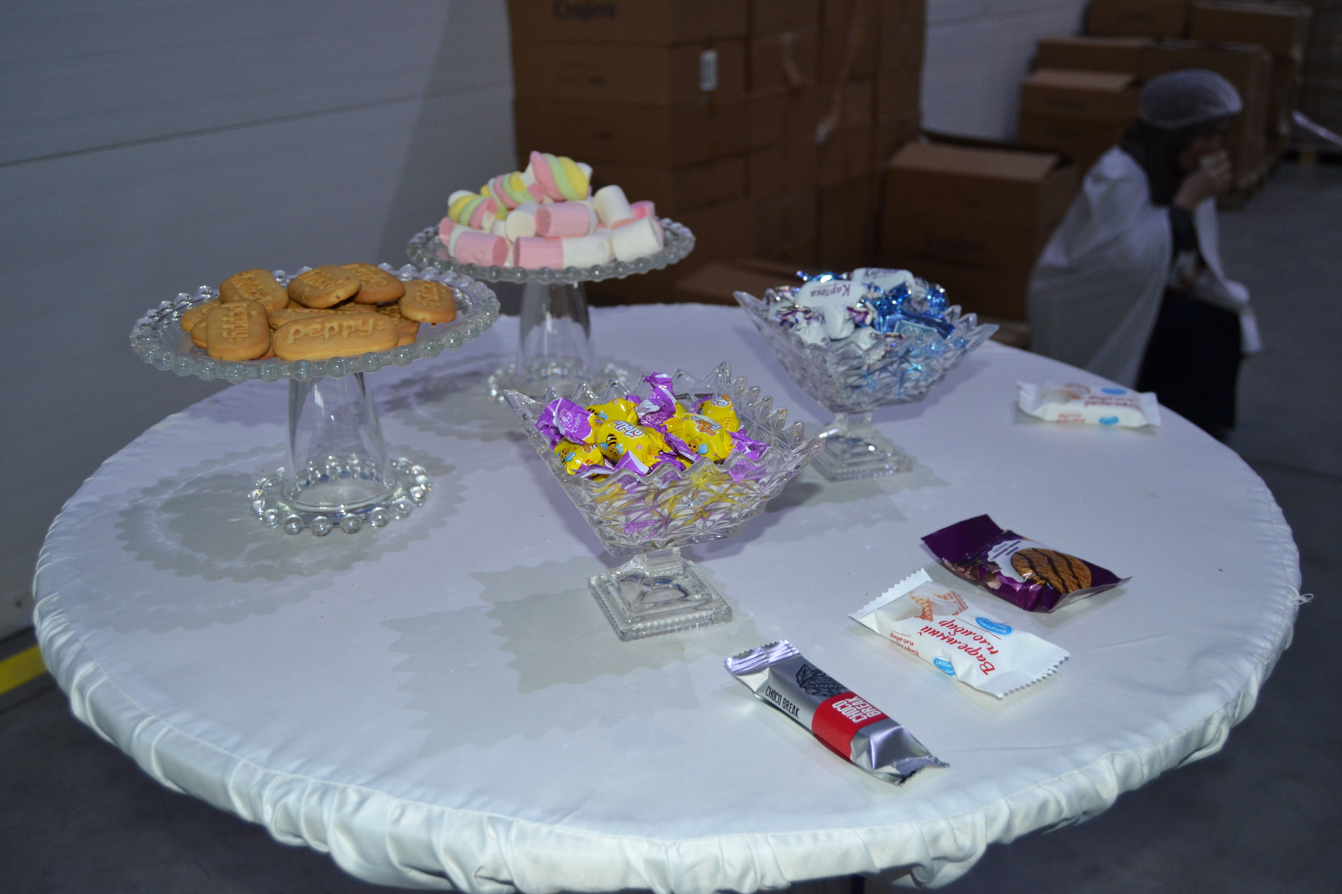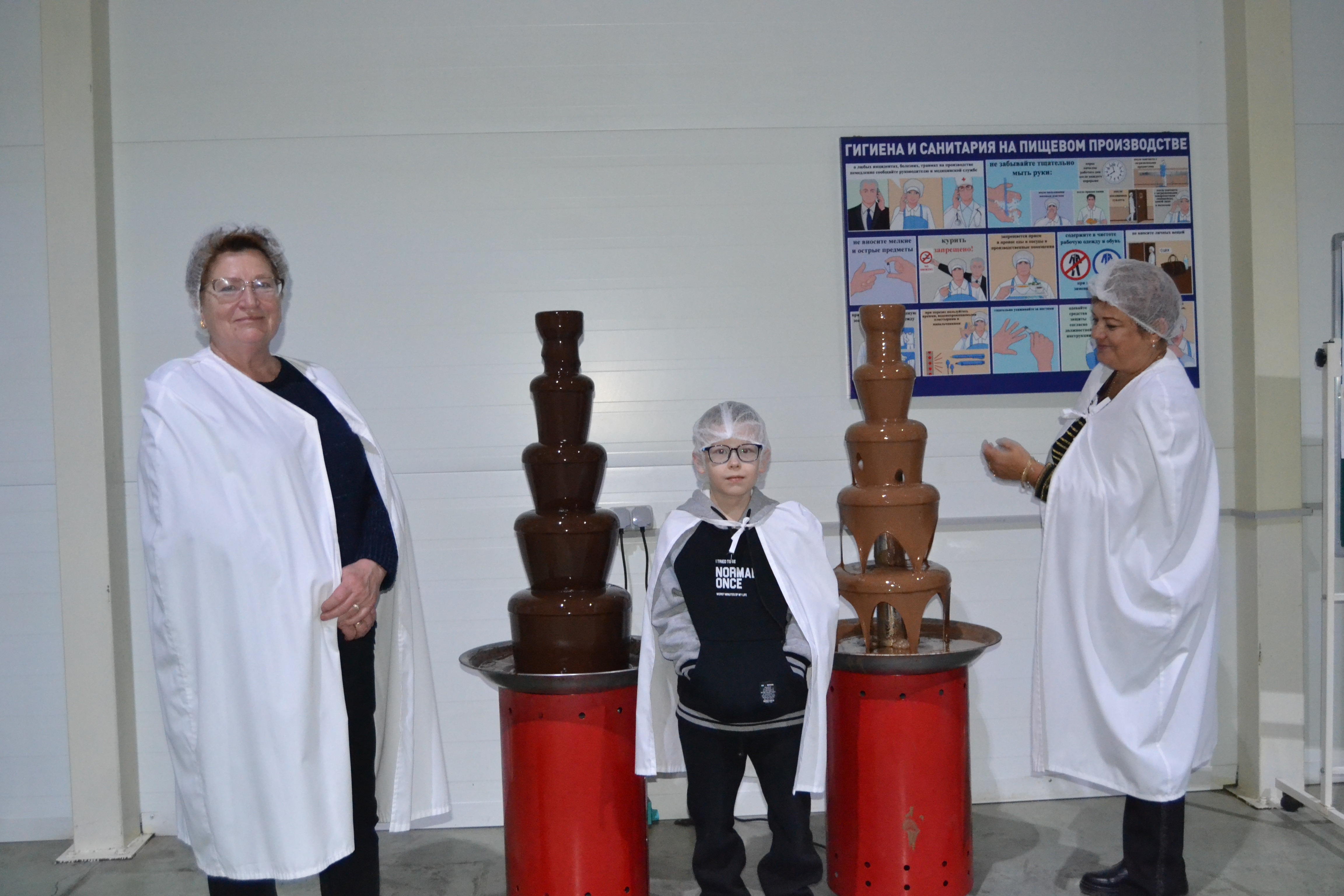 Во время экскурсии ознакомимся с производством маршмеллоу , увидим шоколадный фонтан , а также производство печенья и других сладостей в процессе экскурсии , в заключении экскурсии будет дегустация и сладкие подарки .