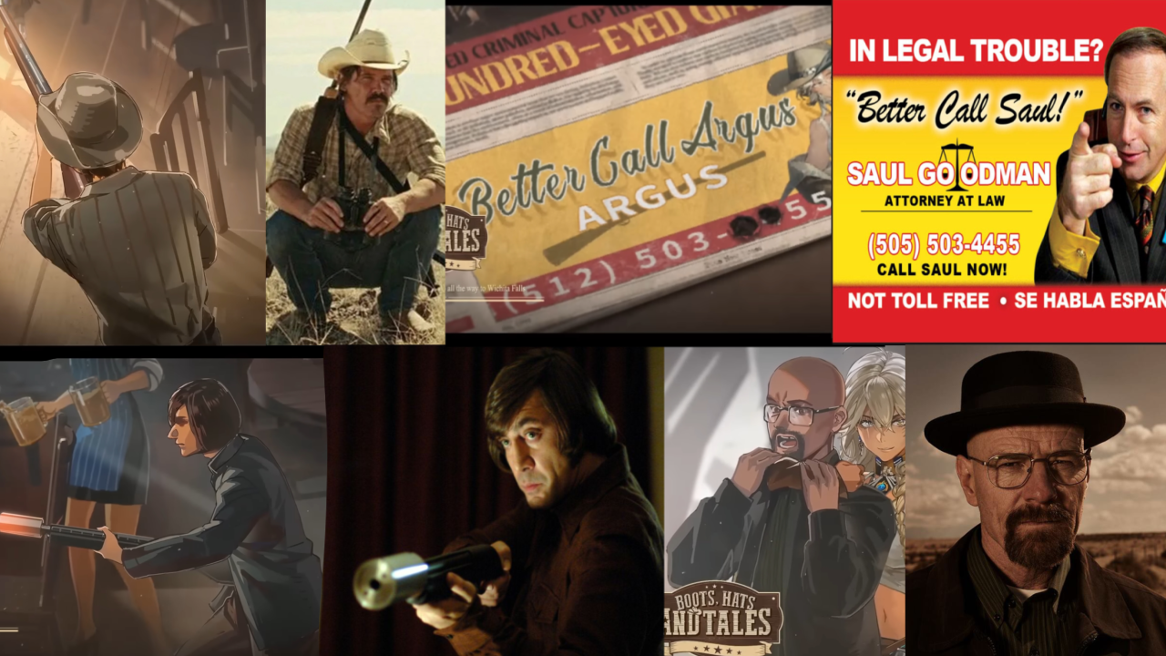В EP с участием Аргус можно заметить героев американского нео-вестерн триллера "Старикам тут не место" Антона Чигура и Ллевелина Мосс и Уолтера Уайта, героя сериала "Во все тяжкие", в EP есть отсылка на приквел этого сериала, на "Лучше звоните Солу".