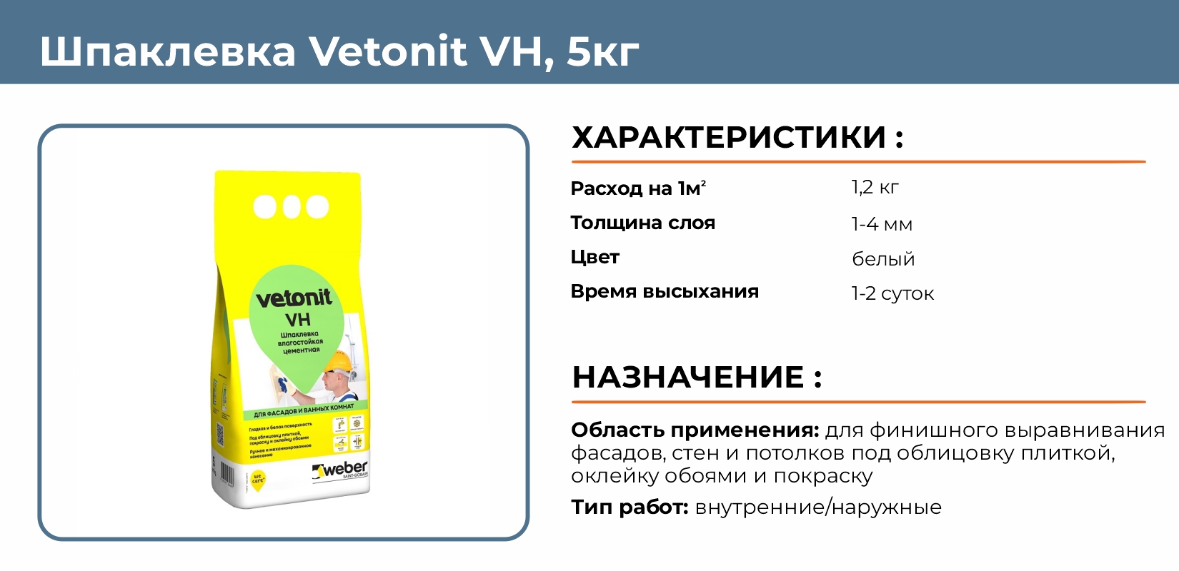 Шпаклевка цементная ветонит vh