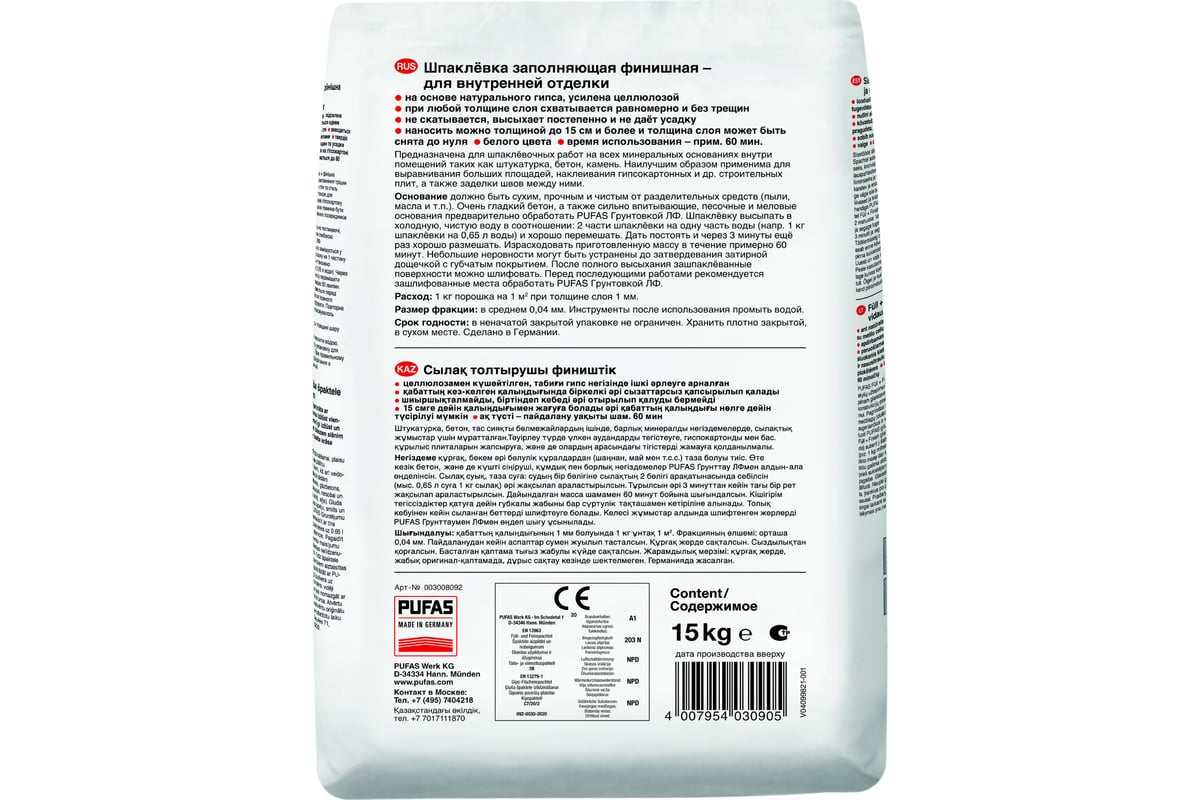 Шпаклевка гипсовая pufas 20 кг 135 фотографий