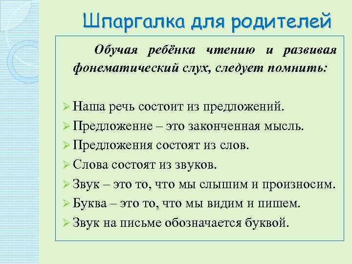 Шпаргалка для логопеда