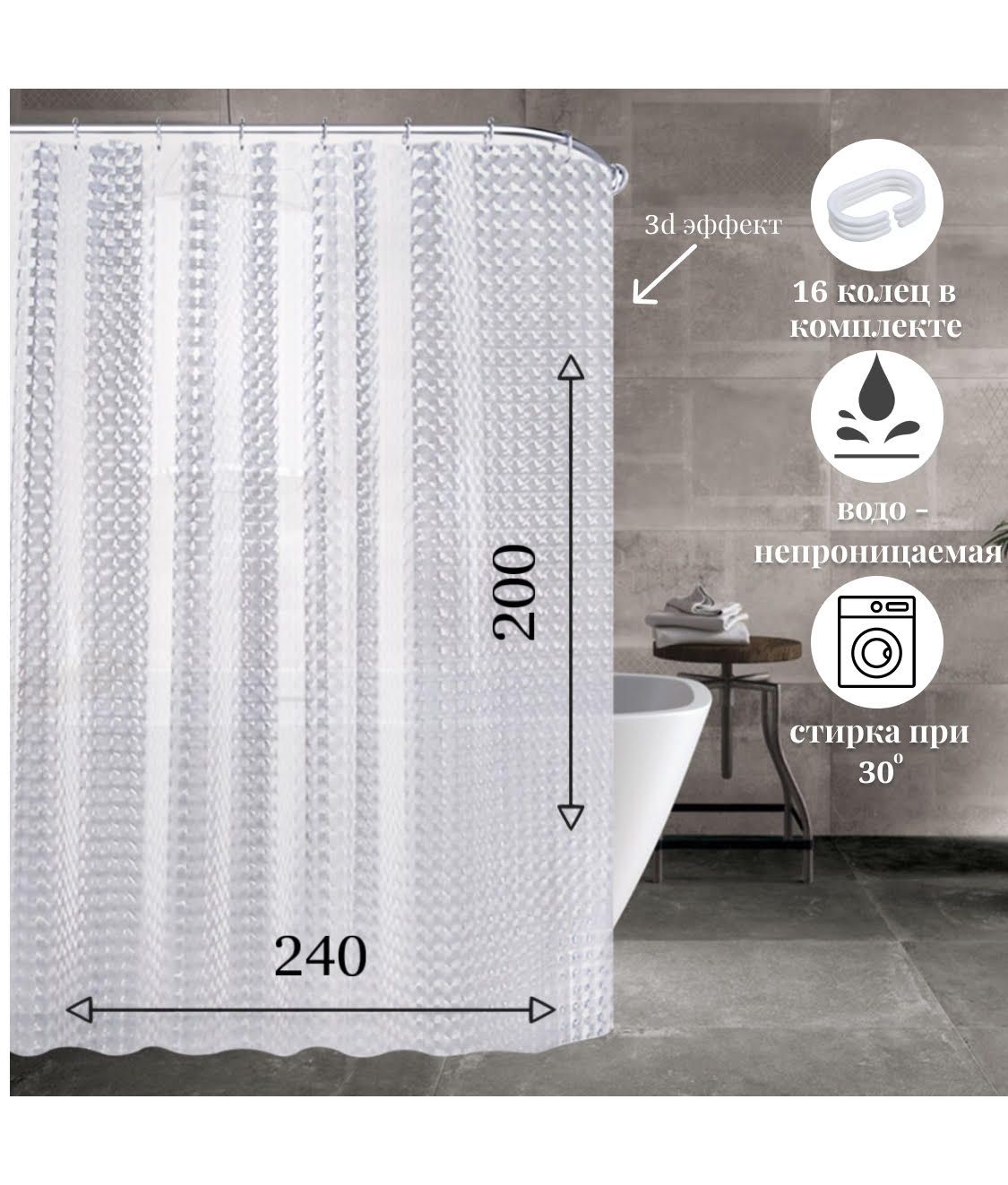 Штора ванна 200х240