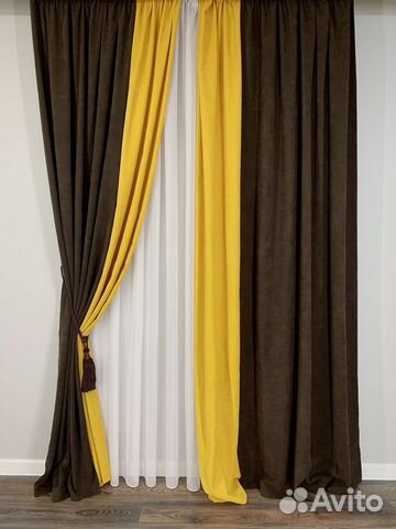 Шторы приятные, шелковистые, мягко драпируются . В зависимости от освещения выглядят точно так же, как на фото, или ярче . Пошив очень аккуратный . Ожиданиям соответствуют .