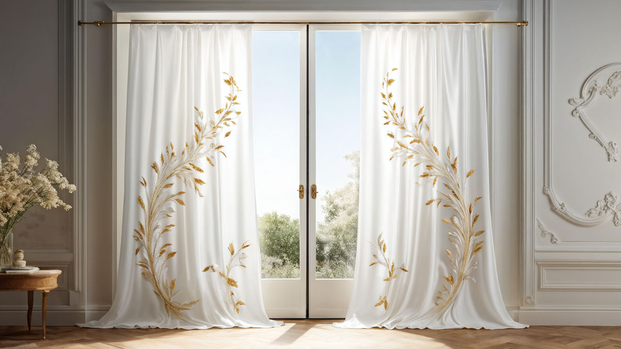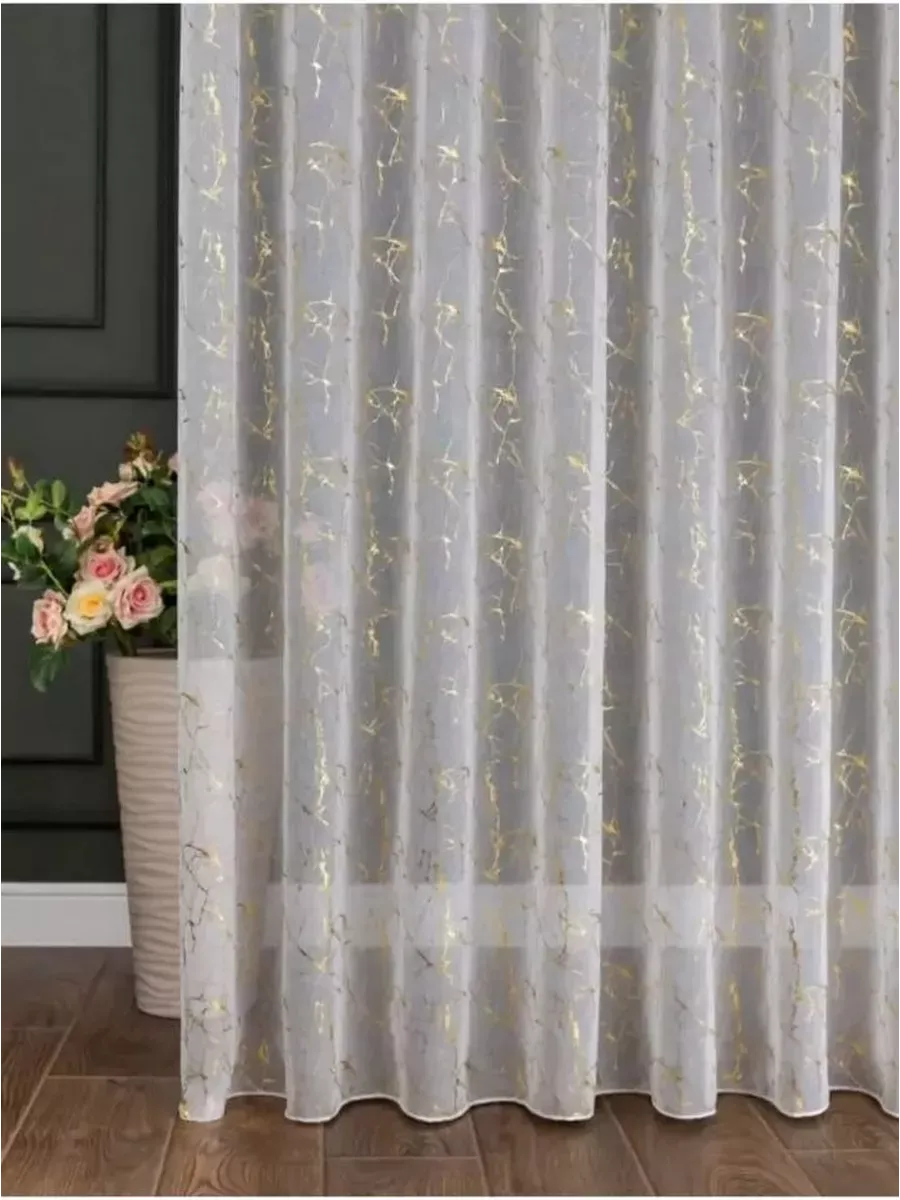 Шторы белый с золотом
