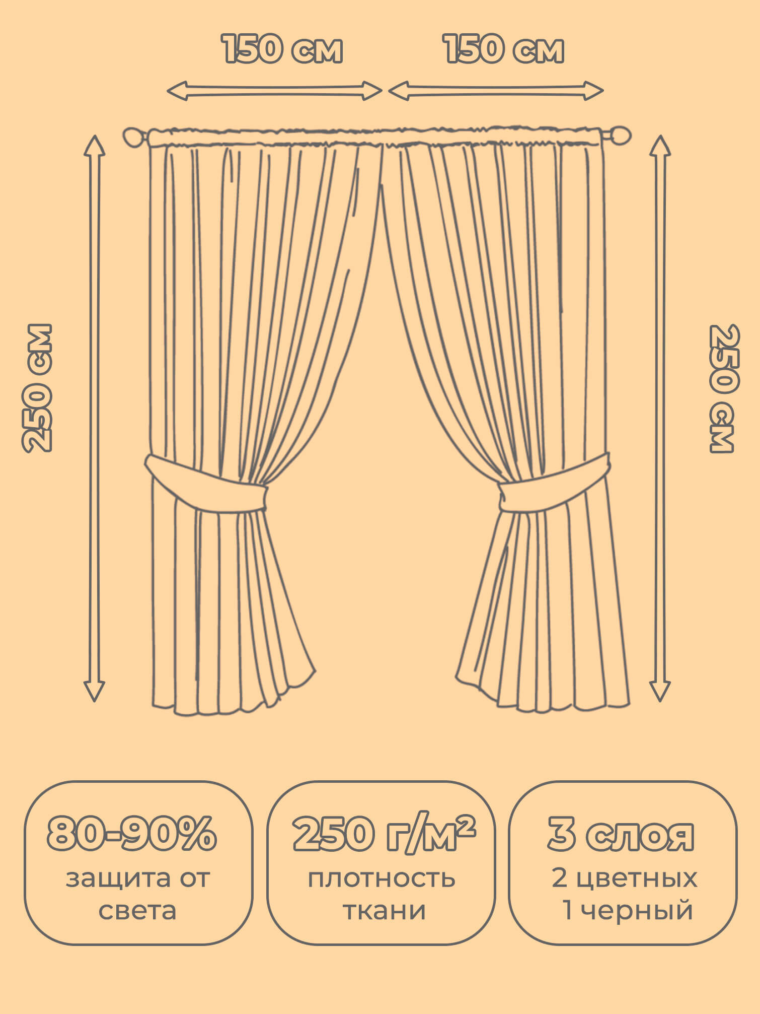 Шторы на кухню размер