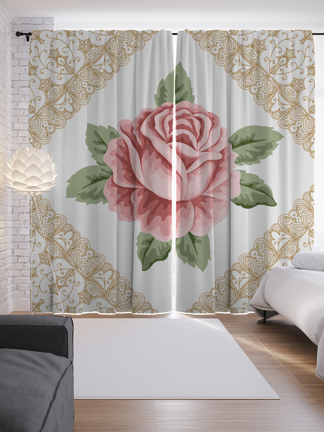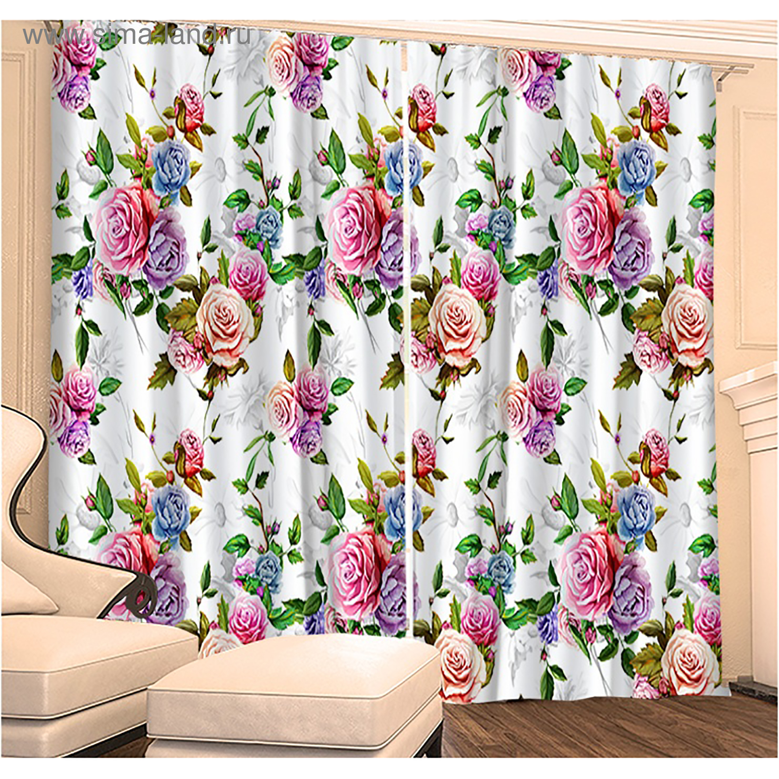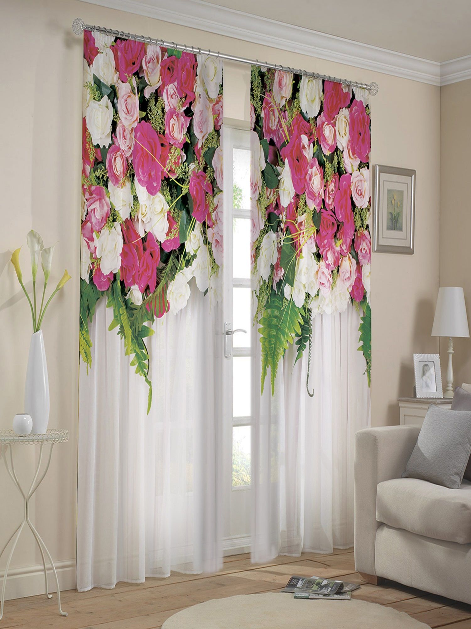 Шторы в розах в интерьере