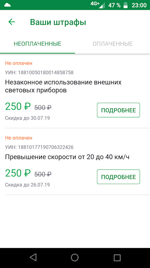 Штраф за парковку по уин