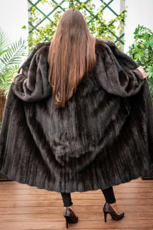 Черные норковые шубы: фото моделей поперечка с капюшоном