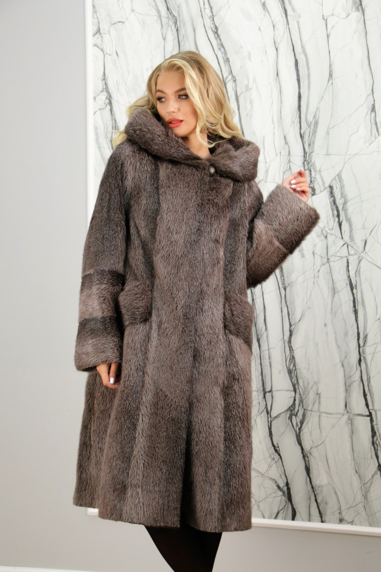 Шуба нутрия с капюшоном