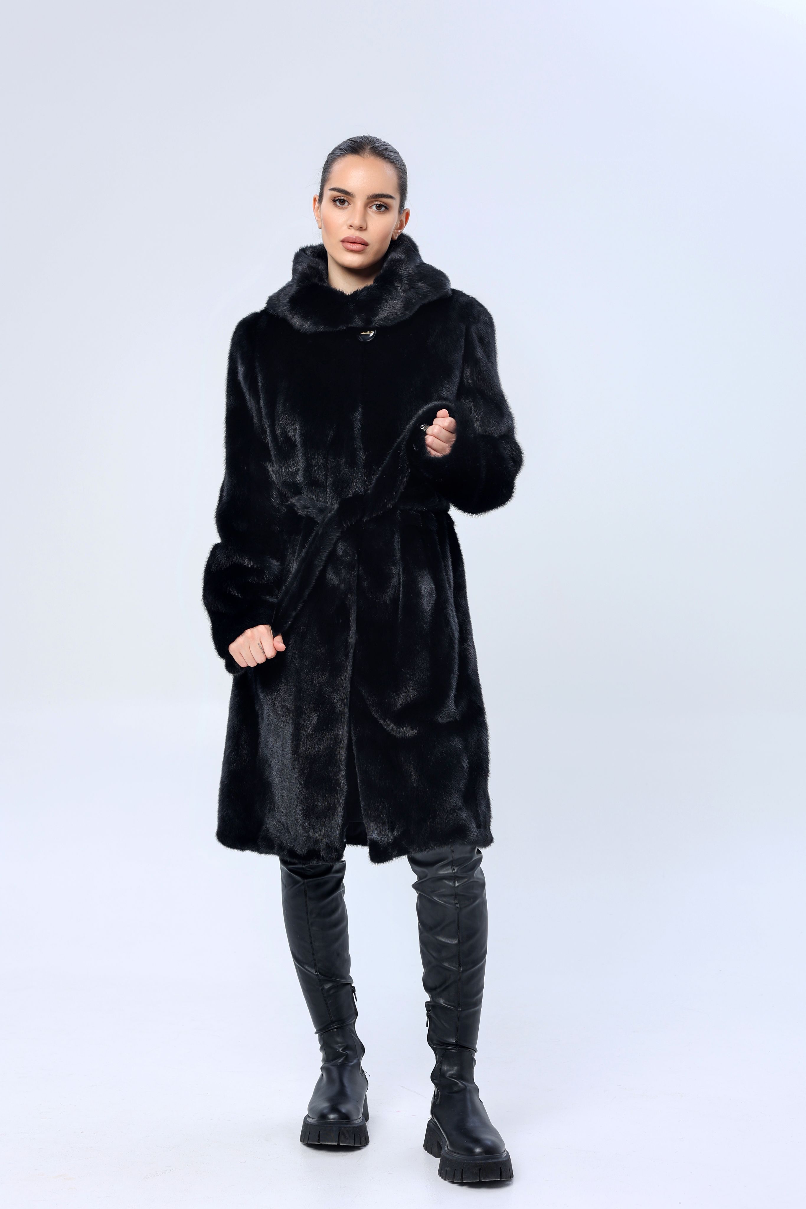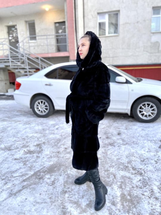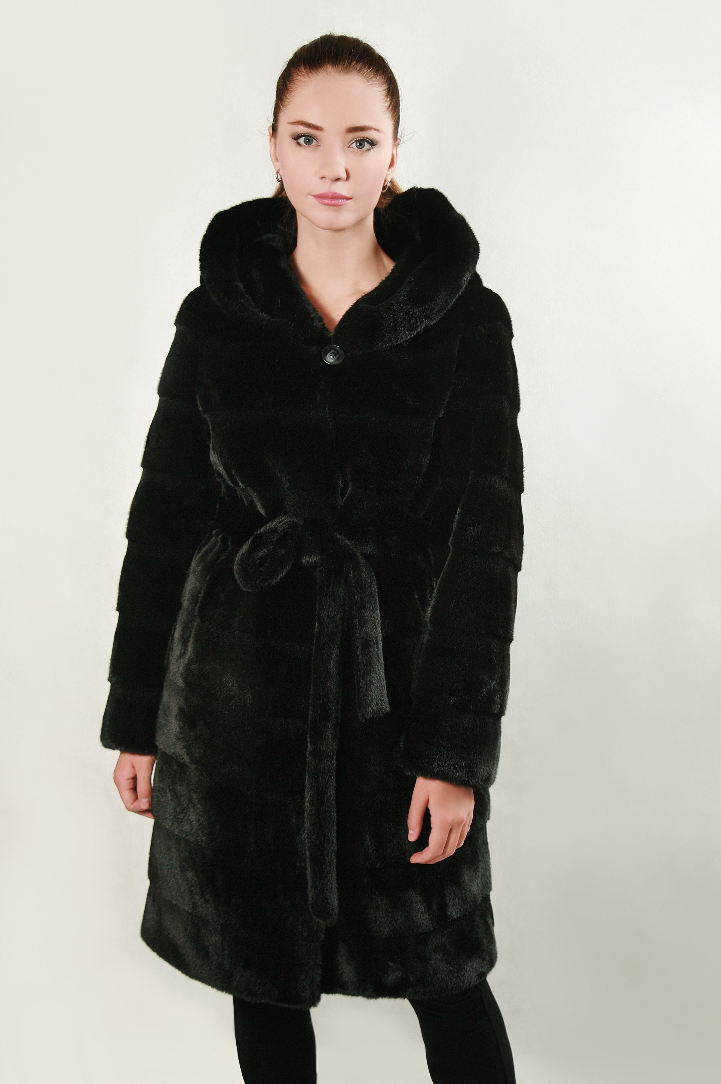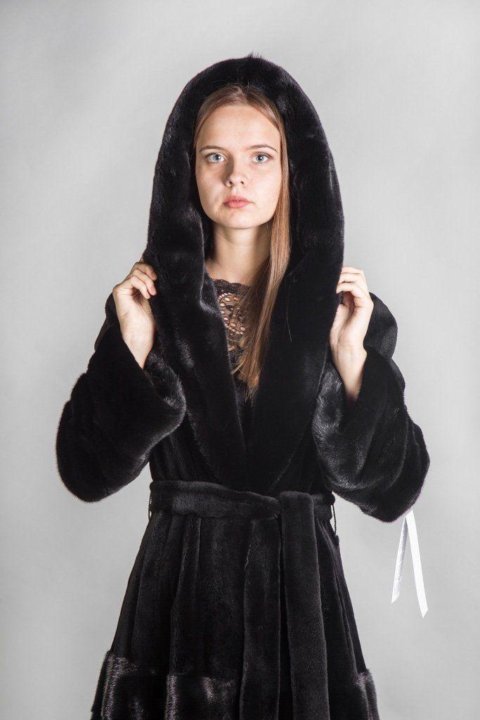 Шуба с поясом и капюшоном