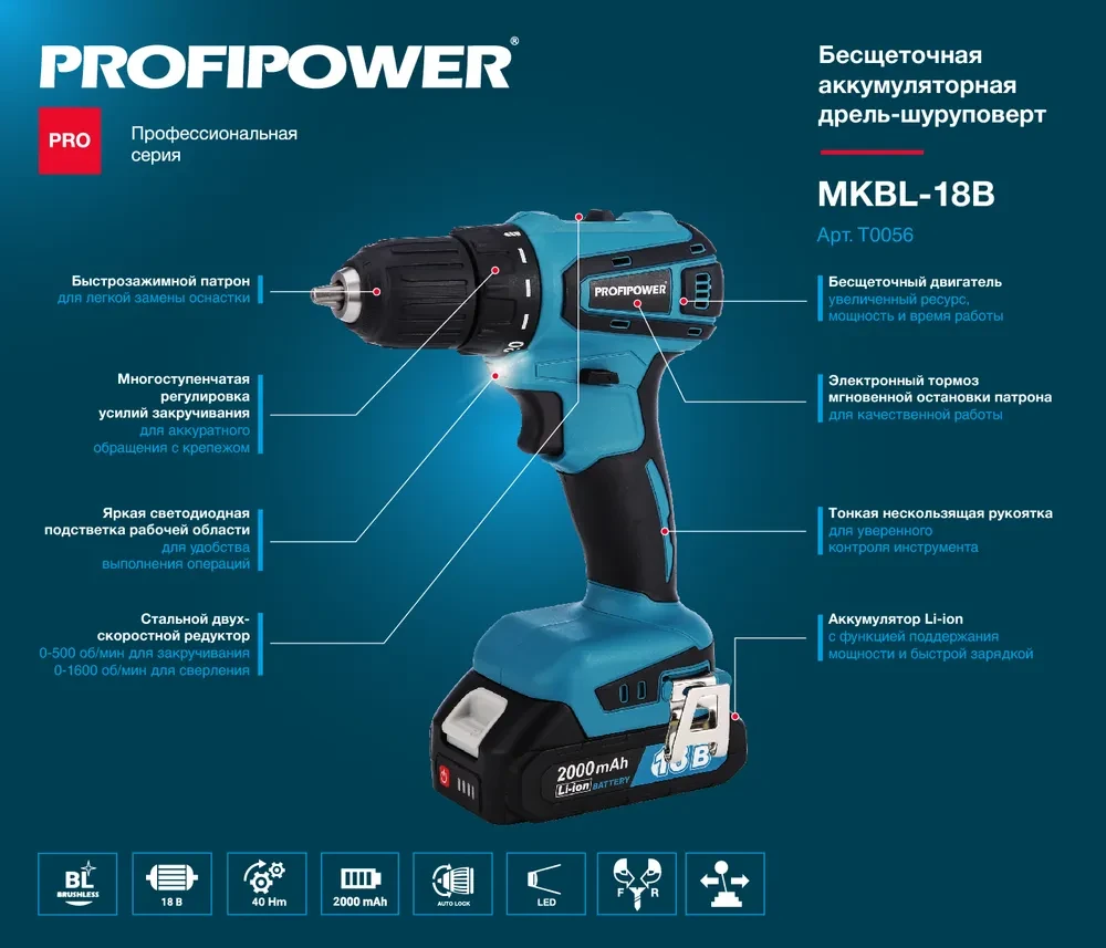 Шуруповерт 18в profipower