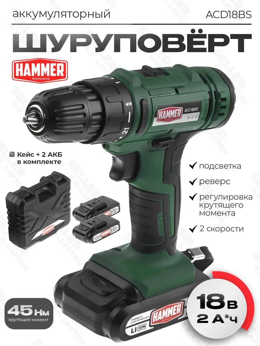 Шуруповерт hammer 18v