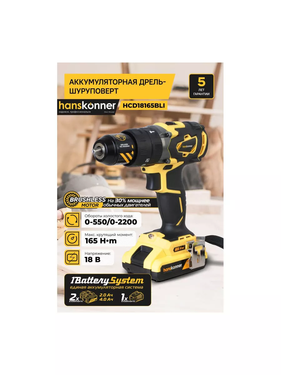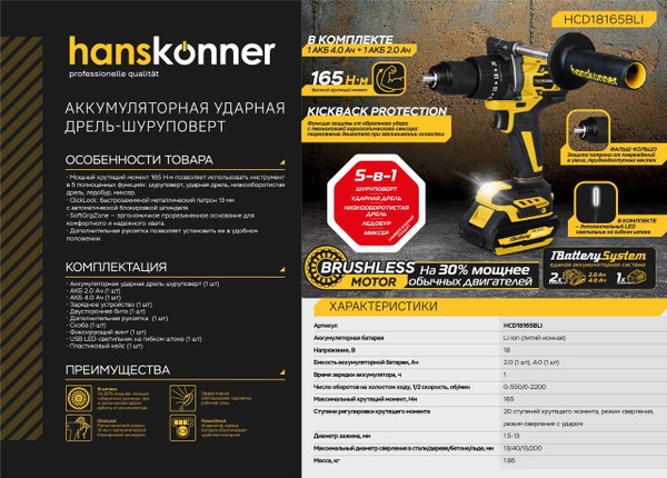Шуруповерт hanskonner hcd18165bli