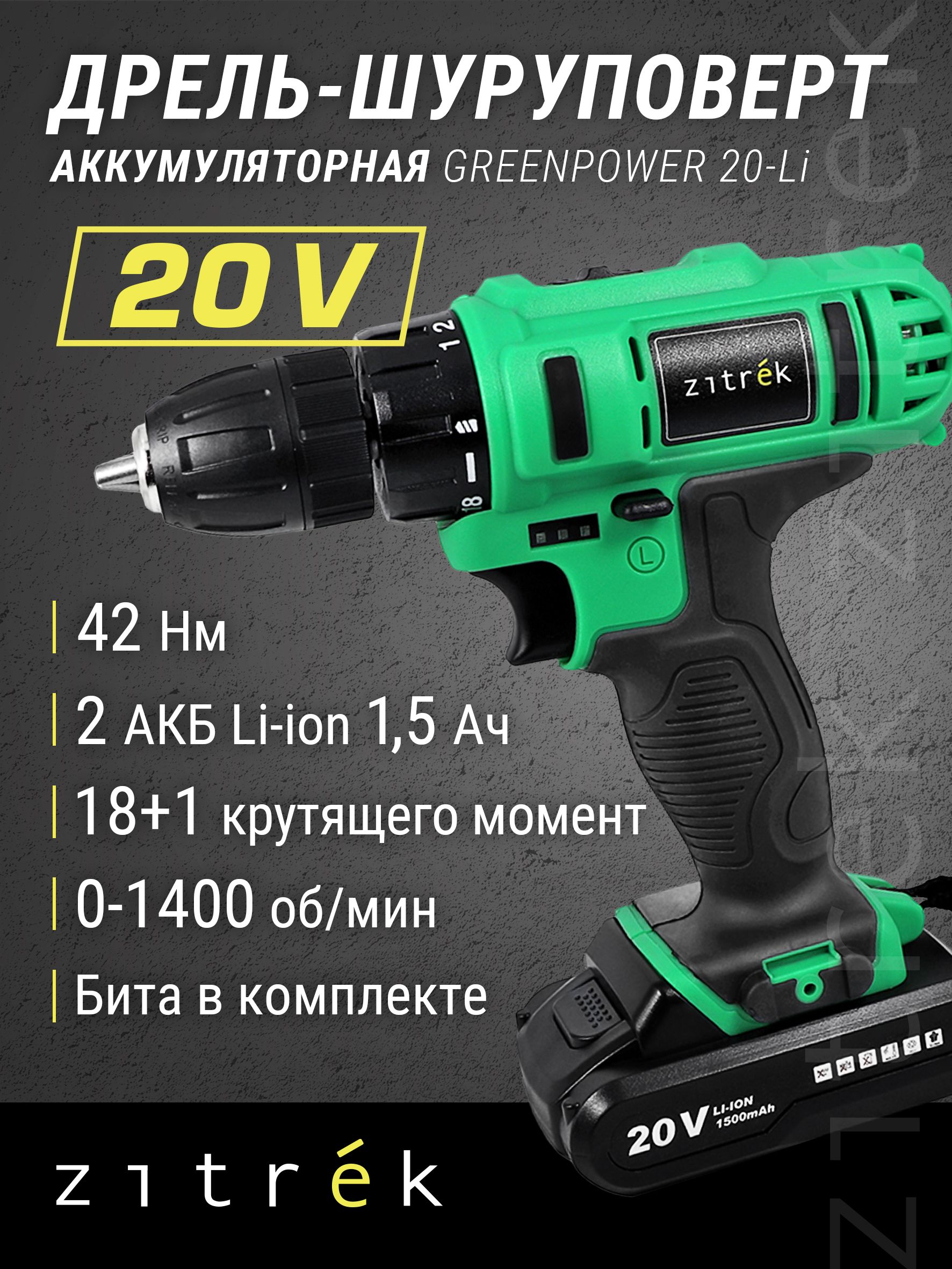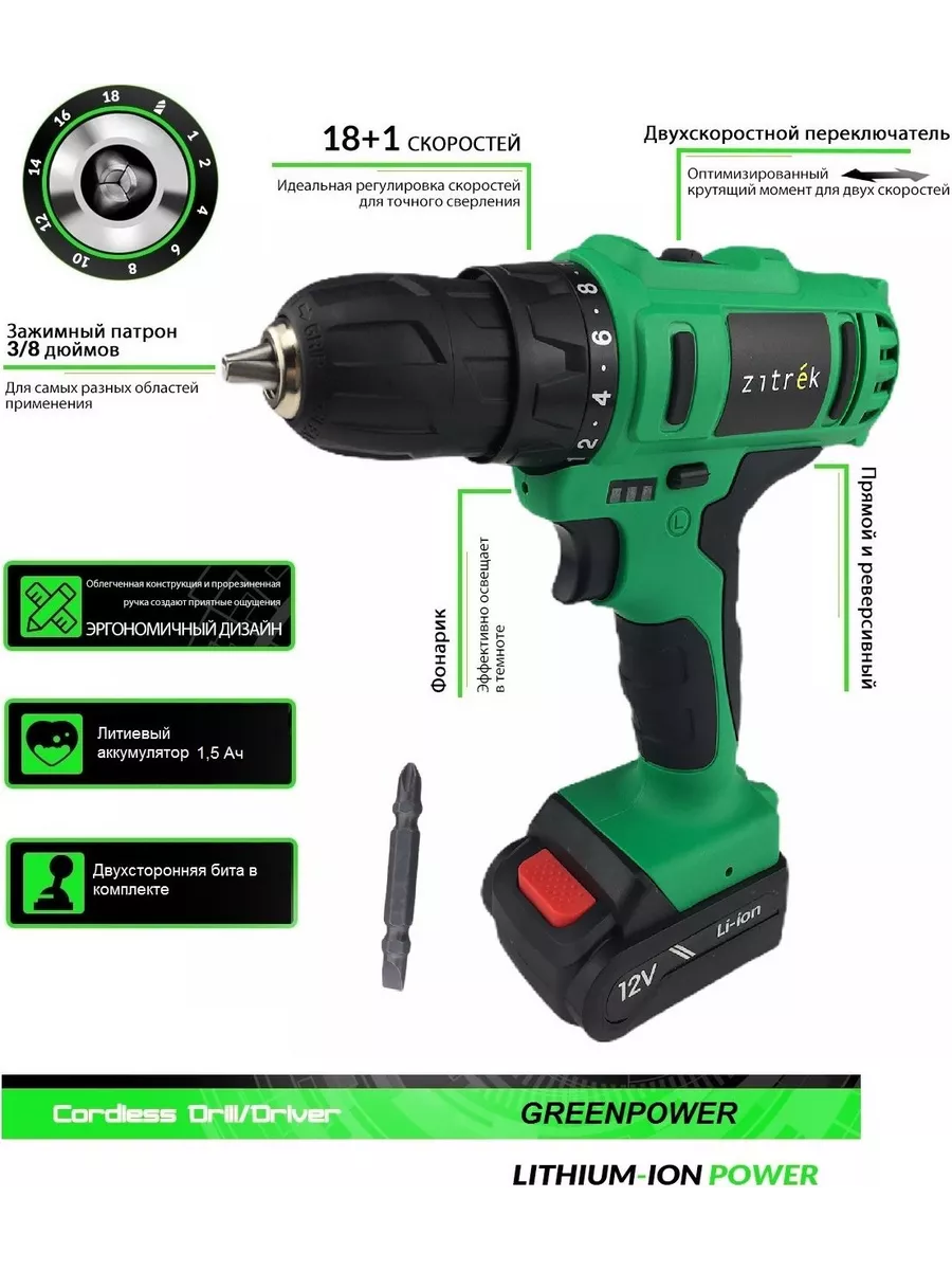 Шуруповерт zitrek greenpower