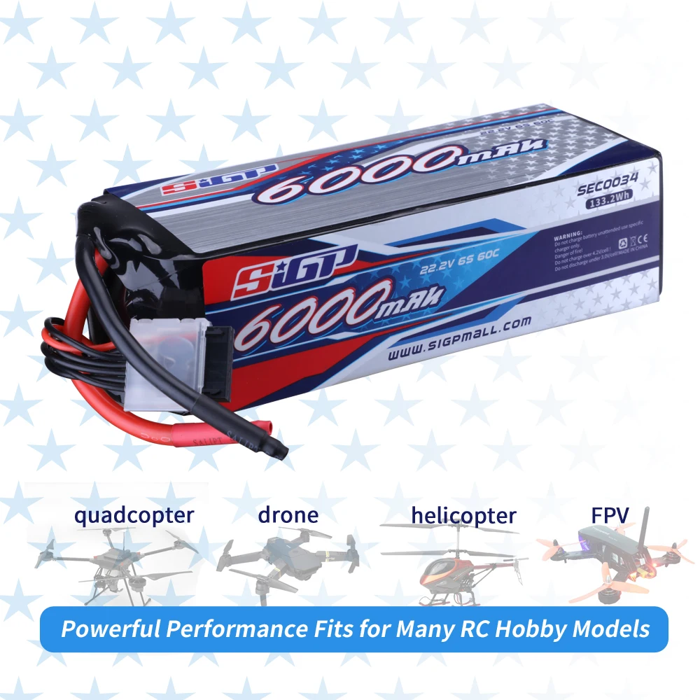 «SIGP 22.2V 6S Lipo Battery 6000mAh 60C Soft Pack Fast Heat for RC Helicopter Airplane FPV Drone Quadcopter Racing Hobby Big» по лучшей цене на рынке! Всего за 58$ (5510рублей)