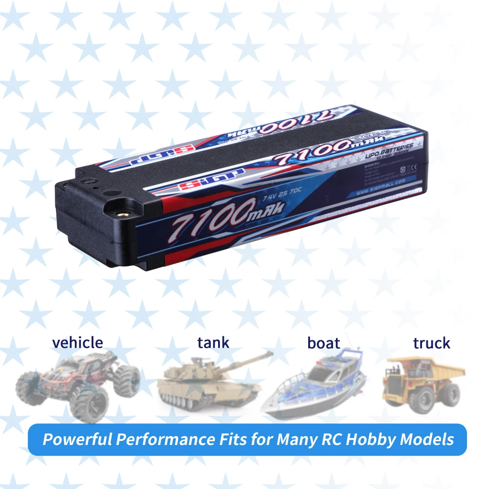 «SIGP 7100mAh 2S 70C 7.4V Lipo Battery Hard Case with 4mm Bullet for RC Vehicle Car Truggy Truck Traxxas Slash Rustler Racing Mod» по лучшей цене на рынке! Всего за 36$ (3420рублей)