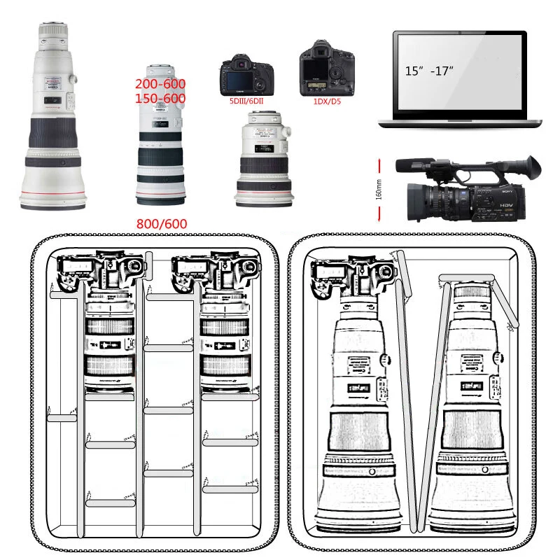 OXeZzVmHahHere you can buy SLR Camera Bag 24' Trolley Case Inner Case Compression Resistant Dual Openings Photography Backpack for 1DX/D5/D6/800/600 Lens with free delivery to your post office.