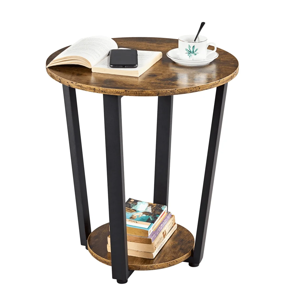 "SMILE MART Metal Side Table Industrial Round End Table with Storage Rack, Brown" * Buy Now With Free Shipping Just For $46