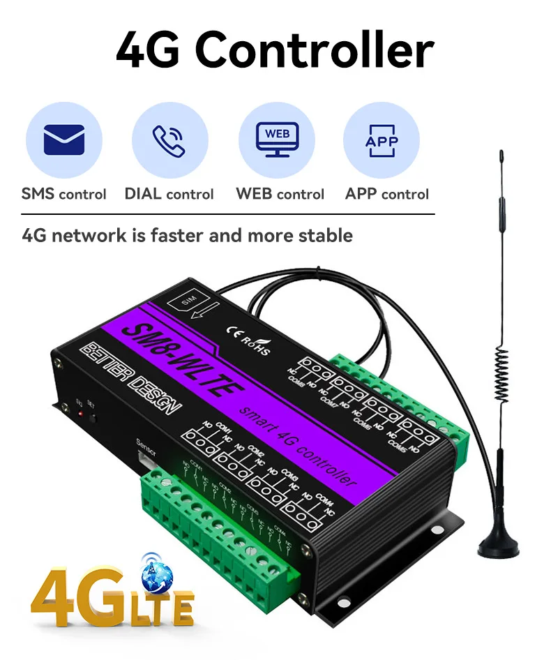 oJhoiKCcXGHere you can buy SMS GSM 4G LTE 4 Channel Relay ON/OFF Switch For Gate Opener Motor Control SM4-WLTE Temperature Humidity APP Remote Controller with free delivery to your post office.