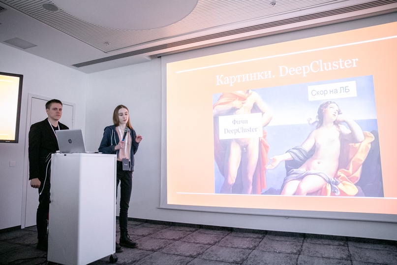 Который практически единогласно был присужден за работу по воспроизведению и апробации алгоритма Deep Cluster от facebook. Простой и не требующий изначальной разметки метод построения кластеров и эмбедингов картинок подкупал новизной идеи и многообещающими результатами.