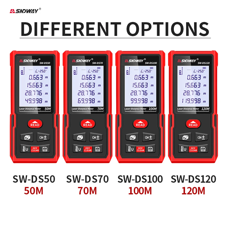 SNDWAY Laser Distance Meter Electronic Roulette Trena Laser Tape Measure Range Finder Metro Construction Tools 50M 70M 100M 120M - Купить с бесплатной доставкой