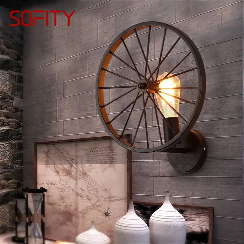SOFITY American Style Wall Light Round Creative Wheel Shape Design Indoor Retro Lamp Fixtures Loft Restaurant LED Sconce - Купить с бесплатной доставкой