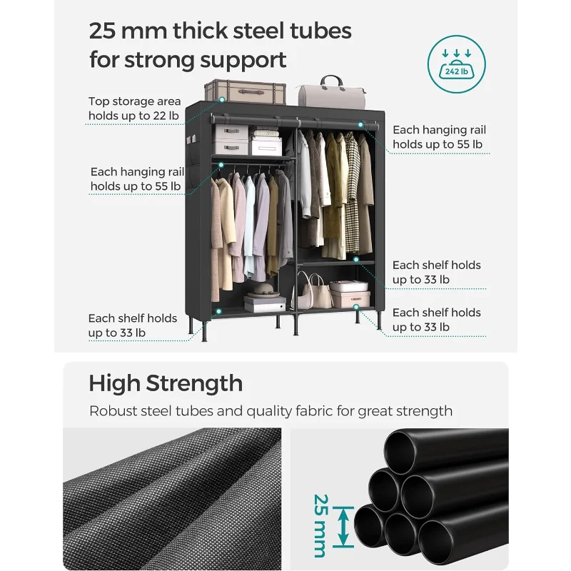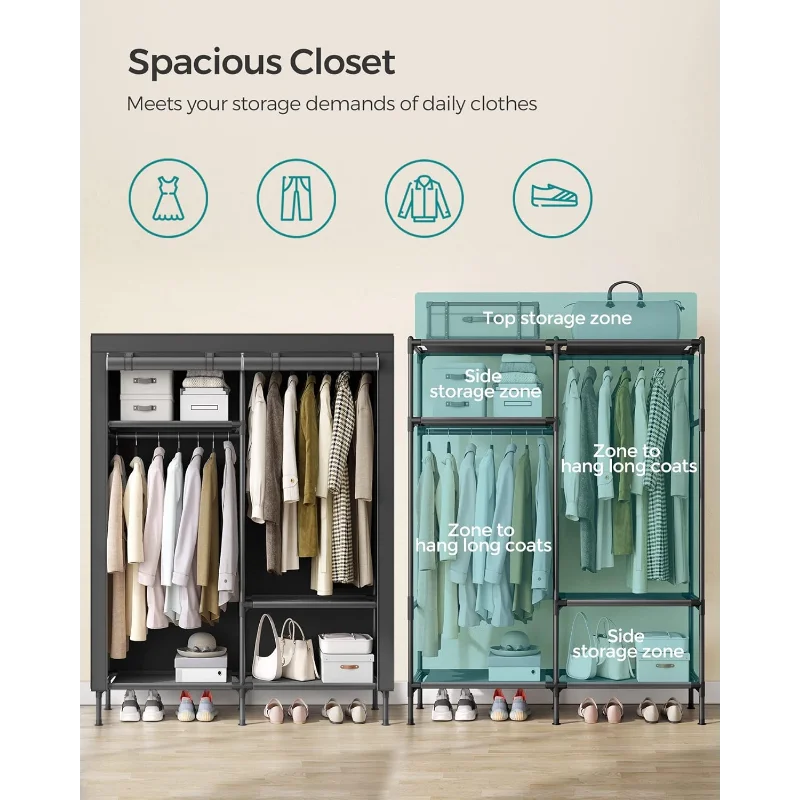 fhHFDVHBXHere you can buy SONGMICS Garment Rack Heavy Duty Clothes Rack, 65 Inch Freestanding Portable Wardrobe Closet with Hanging Rails and Shelves, with free delivery to your post office.