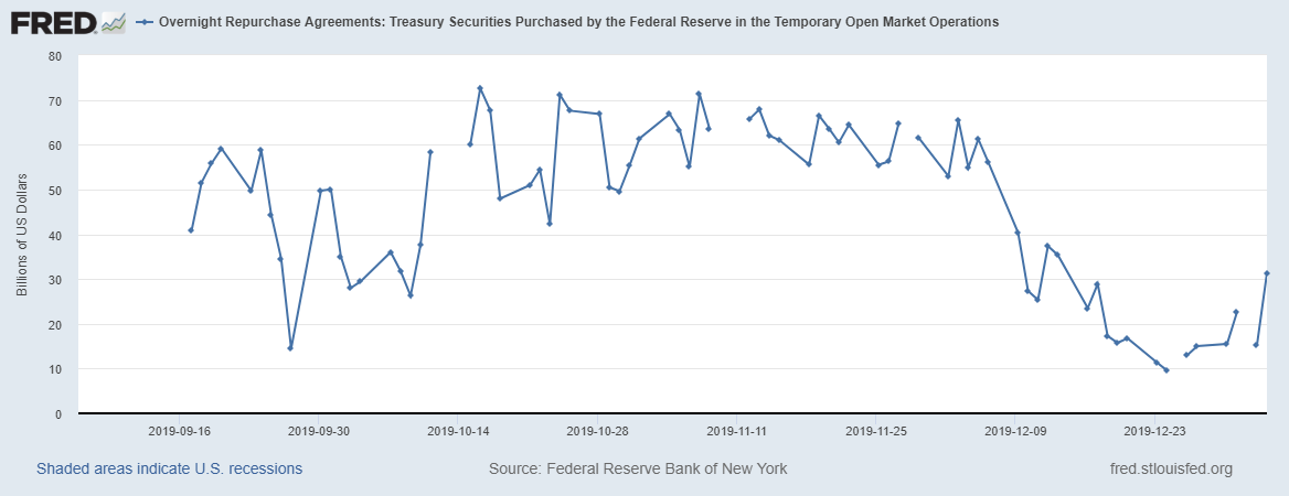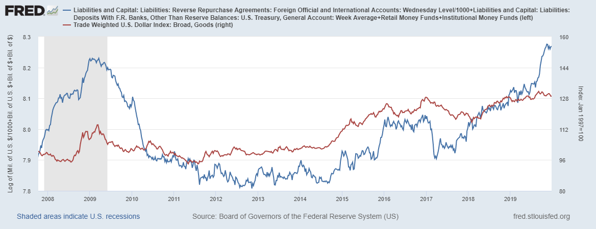 Зеленая линия - это вложения во взаимные фонды денежного рынка. Показатель остается высоко, рост пока приостановился, но данные по показателю от 18.12.2019 года. Надо ждать свежие.