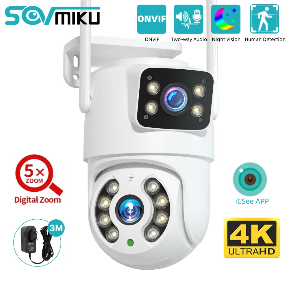 phLbvYxpvqHere you can buy SOVMIKU 8MP 4K PTZ WiFi Surveillance Camera Dual Len 5X Zoom Night Vision ONVIF Auto Tracking CCTV IP Camera Security Protection with free delivery to your post office.