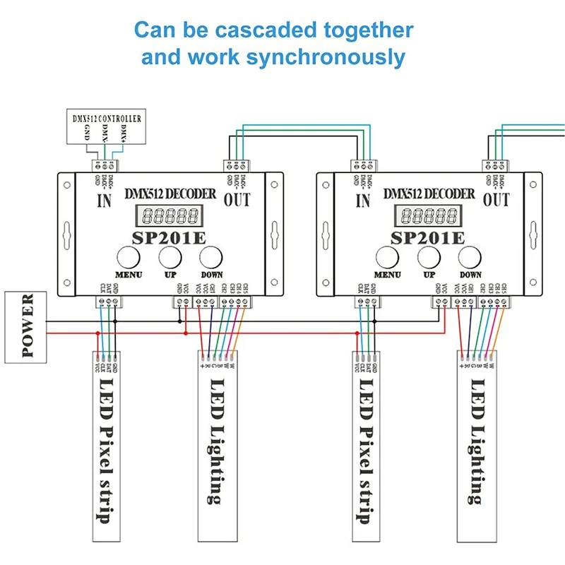 SP201E DMX512 LED Decoder Controller 5 CH PWM SPI Pixels LED Light Strip SK9822 WS2812B WS2811 DC5V-24V ,Support Multiple ICs - Купить с бесплатной доставкой