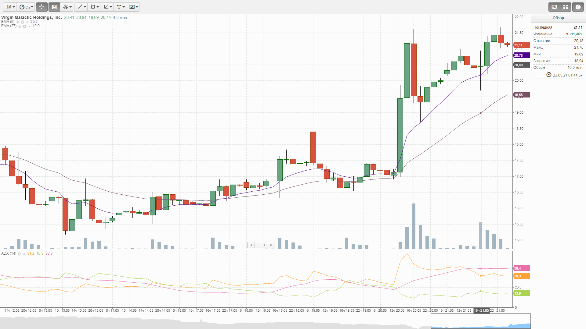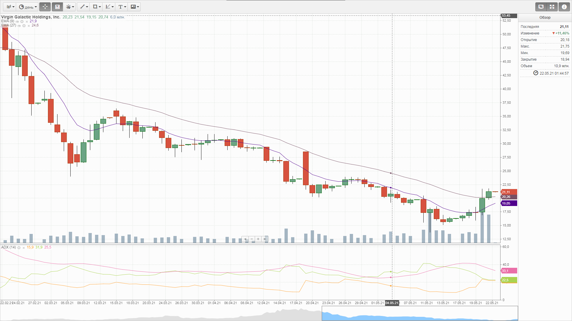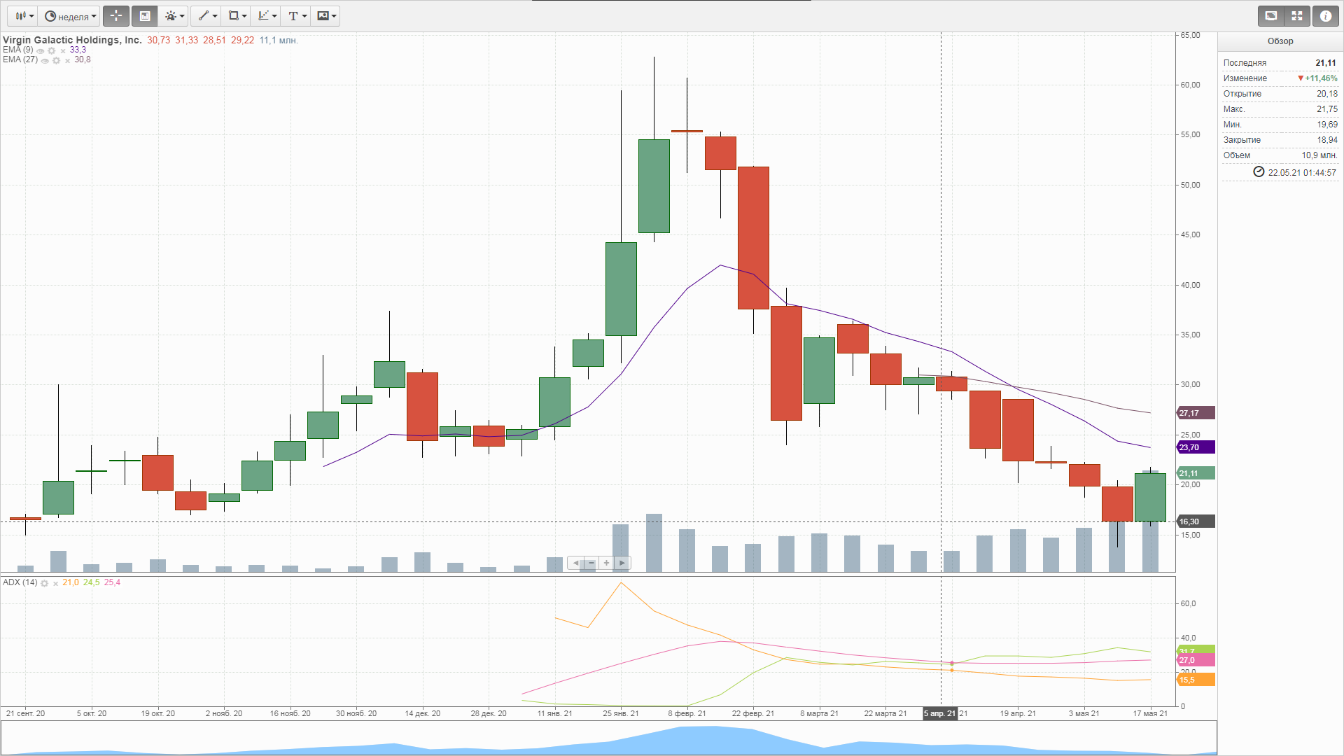 Следующий весьма сложный вопрос, где выходить. Имхо, на первом же пампе этого делать не стоит. Если дневной и недельный тренд будут пробиты, а все предпосылки к этому есть, бумага может обновить хаи, фактор Маска очень кстати. Чем выше будет рост, тем больше желающих купить. Когда рост остановится, но толпа будет только набиваться, тогда и надо выходить. На мой взгляд бумагу нужно держать до полета с Бренсоном или первого коммерческого запуска, не оглядываясь на шум. В любом случае это очень увлекательное зрелище, очень интересно наблюдать за поведением толпы и реакцией рынка.