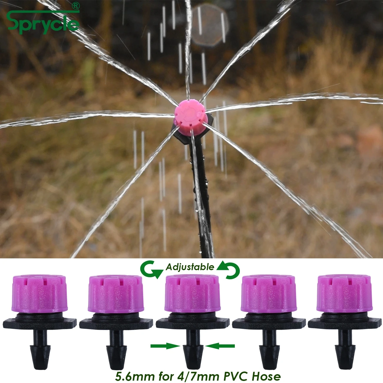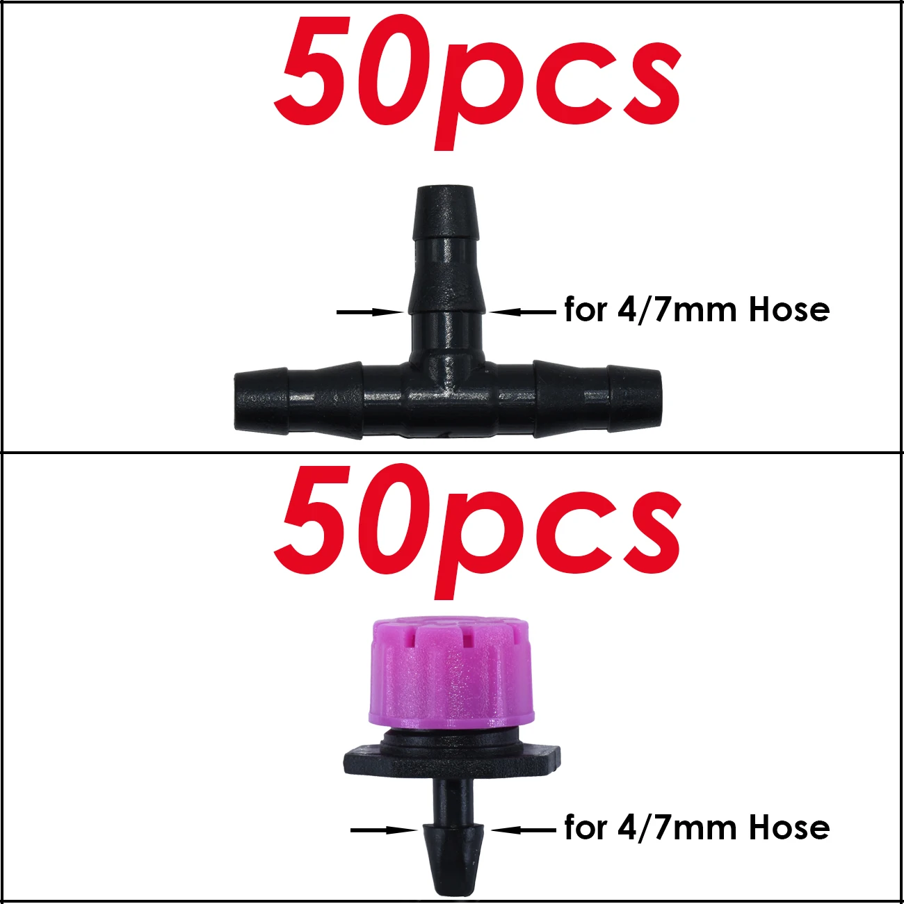"SPRYCLE 50PCS Adjustable Pink Drippers for 4/7mm Hose Automatic Watering w/ 50PCS Tee Connector Garden Drip Irrigation Kit" * Buy Now Just For 5$