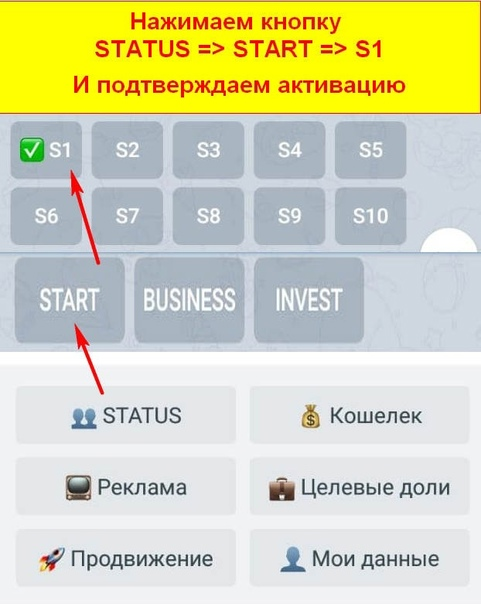 При подключении бота он присваивает вам статус «Free» — это статус каждого нового пользователя. Пассивный доход от этого статуса очень незначительный, прибыль от продвижения бота на этом статусе — всего 10%. Чтобы выйти на прибыль от личной активности 50% нужно поднять статус до S1 или более.