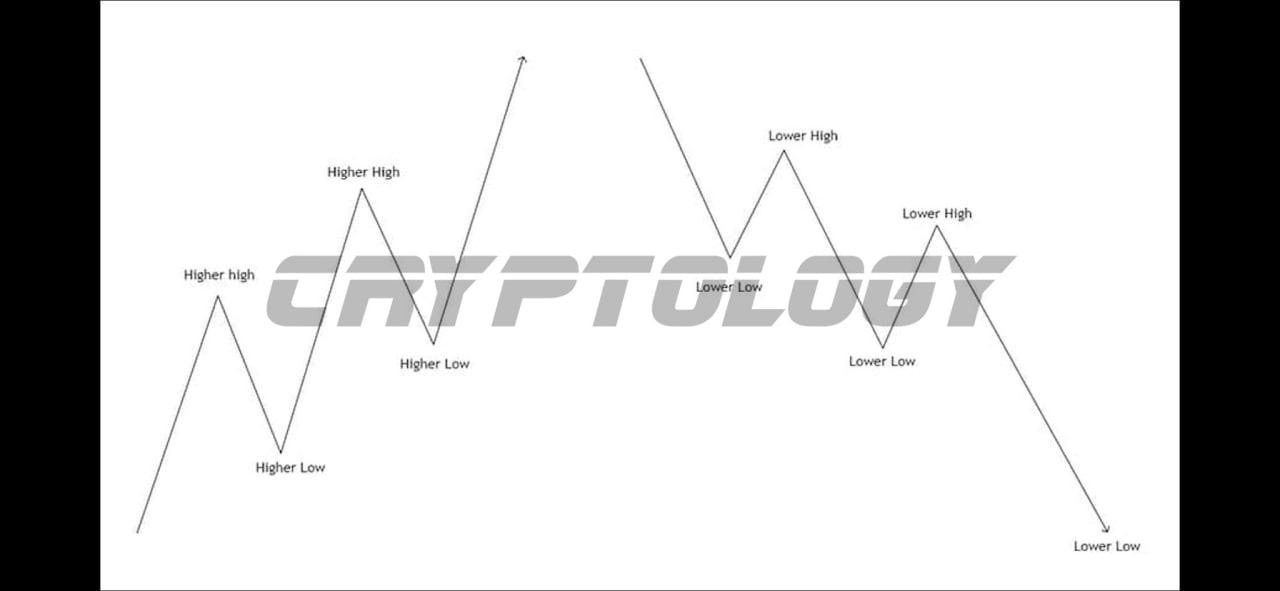 Основные правила восходящей структуры это повышающиеся хаи HH и повышающиеся лои HL, то есть каждый последующий хай(вершина) должен быть выше предыдущего, так же каждый лой(самая нижняя точка) должен быть выше предыдущего