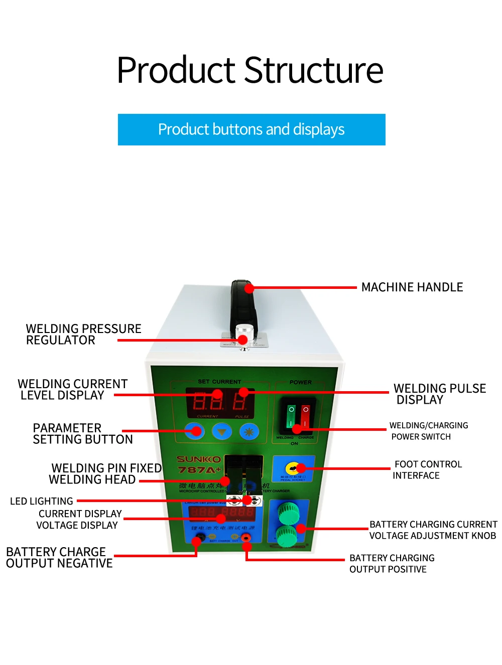 APZbBXGLHere you can buy SUNKKO LED Pulse Battery Spot welder 787A+ Spot welding Machine Micro-computer 18650 micro welding with LED light +Battery Clamp with free delivery to your post office.