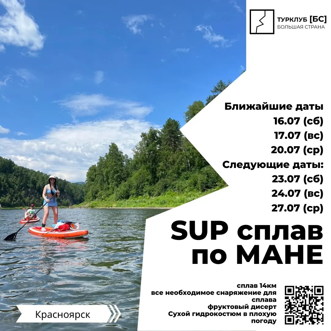 Сплав по Мане на SUP досках (3−4 часа).