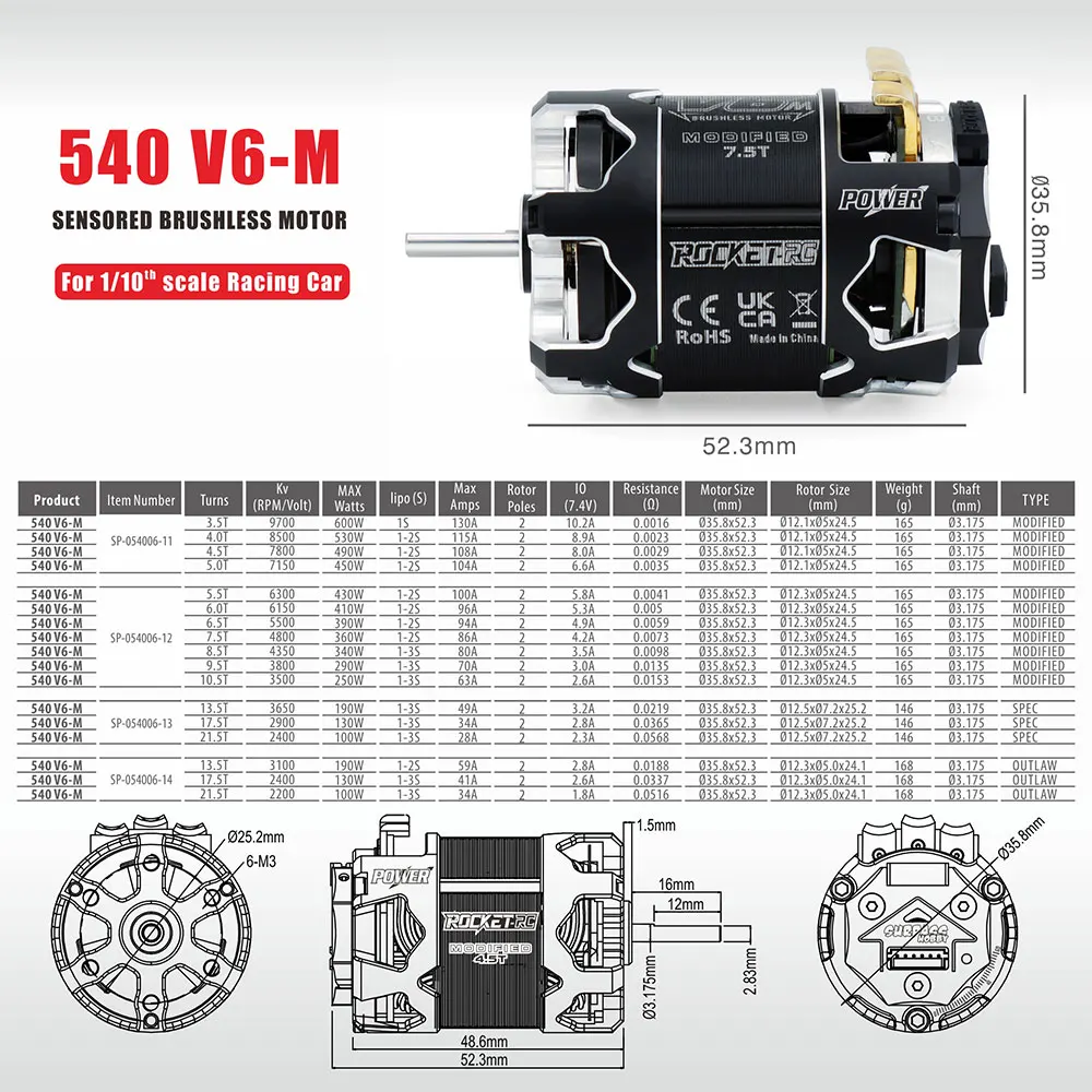 DyAtwIksHere you can buy SURPASS HOBBY ROCKET 540-V6/V6M Sensored Brushless Motor High Conductivity Competition Level for 1/10 RC Racing Car Model Part with free delivery to your post office.